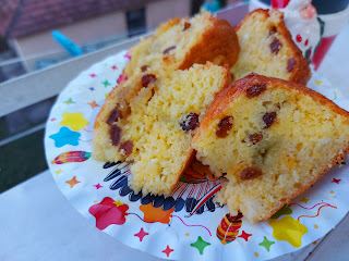 Priprema: Umutiti jaja sa šećerom, dodati brašno sa praškom za pecivo, ulje, koricu limuna, žele bombone, suvo groždje, jogurt i sve izjednačiti. Sipati u manji pleh ili u manji kuglof. Peći na 200 stepeni C oko 30 minuta. Posutu prah šećerom.
