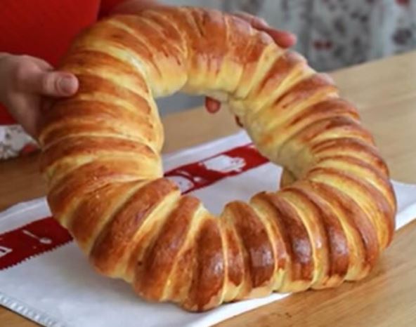 Prebacite testo u podmazan pleh ili papir za pečenje i ostavite oko pola sata ili više, u zavisnosti od temperature u kuhinji. Pre pečenja pogaču premazati jednim žumancetom.