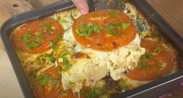 Priprema: Piletinu iseći na kockice, začiniti i dodati sve sastojke i promešati. Presuti u pleh za pečenje, pa preliti prelivom. Peći u rerni na 200 stepeni 25-30min, nakon toga dodati odozgo rendani kačavalj i kolutove paradajza i vratiti u rernu da se samo malo zapeče. Prijatno!