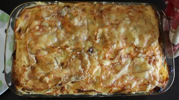3. Preko staviti mlince, pavlaku, sir, meso... raditi tako dok ima materijala, s tim da završni sloj budu mlinci koje ćete preliti pavlakom i posuti sirom...