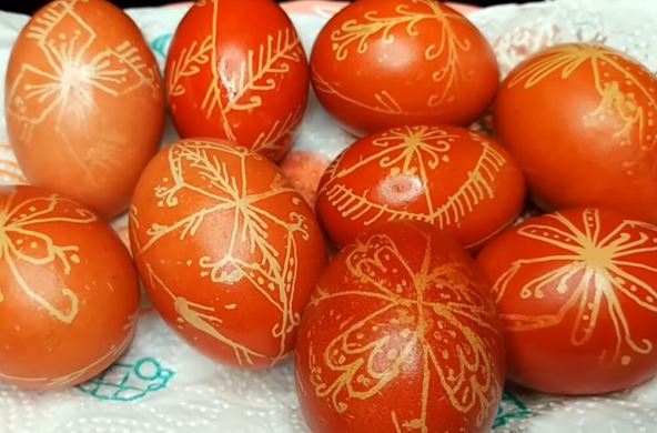 Priprema: Jaja skuvajte pa onda dok su još mlaka krenite da ih bojite tako što ćete nalivpero umočiti u rastopljen vosak pa na sveću pa sa time šarati jaje. Išarana jaja stavljajte u rastvor crvene boje pa kuvajte još par minuta.