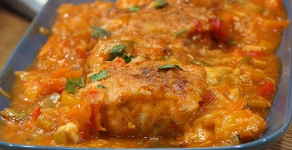 Belo pileće meso preliveno povrćem je veoma sočno, a ukus je neodoljiv! Kao prilog možete da pripremite pire ili pirinač, a možete i samo sa parčetom hleba da poslužite.