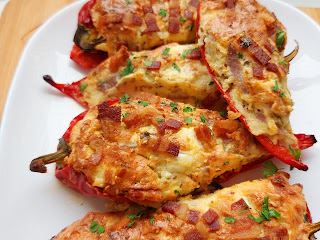 Priprema: Sir izdrobiti viljuškom i dodati jaja, susam, griz, peršunov list, po želji mlevenog biber, beli luk, seckanu šunku i sve izmešati. Papriku preseći na pola po dužini i poređati u podmazan pleh. Na papriku rasporediti nadaev a odozgo rasporediti sitno seckanu suvu slaninu. Peći na 220 stepeniC oko 30 minuta.