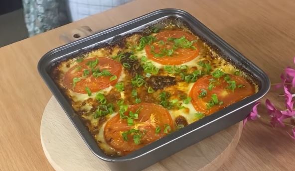 Priprema: Piletinu iseći na kockice, začiniti i dodati sve sastojke i promešati. Presuti u pleh za pečenje, pa preliti prelivom. Peći u rerni na 200 stepeni 25-30min, nakon toga dodati odozgo rendani kačavalj i kolutove paradajza i vratiti u rernu da se samo malo zapeče. Prijatno!