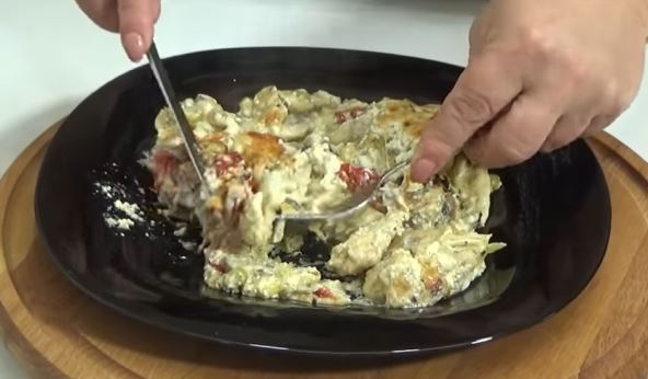 Priprema: U vatrostalnu činiju posložite pečurke, zatim paprike, zatim beli luk, zatim papričice. Dodajte začine i neku krem supu od pečuraka. Dodajte seckanu piletinu. Preko toga dodajte opet pečurke i ostalo povrće. Dodajte malo ulja i nalijte neutralnu pavlaku. Poklopite i ubacite u rernu na pečenje.
