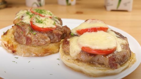 Priprema: Glavice kupusa isecite tako da dobijete pune krugove. Začinite ih pa ih kratko na malo ulja prepržite s jedne i s druge strane u tiganju, tako da dobiju zlatnu boju. U pleh na papiru za pečenje poredajte kolutove prepečenog kupusa, pa ga premažite sa obe strane namazom od pavlake, senfa i začina. Usoljeno meso stavite preko kupusa i pecite na 180 stepeni Celzijusa oko pola sata. Na meso stavite paradajz, a potom i rendan sir pa zapecite par minuta. Uživajte.