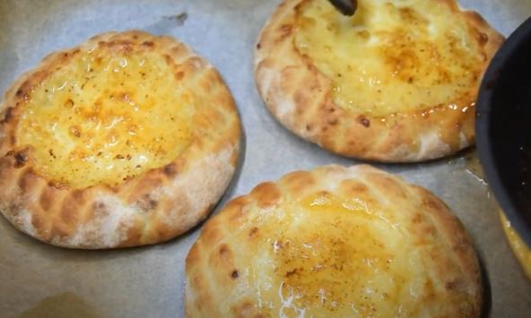 Priprema: Odsecite gornju trećinu lepinje. Donji deo premažite kajmakom. Umutite jaje i prelijte ga preko kajmaka. Utisnite ga malo u lepinju. Stavite u zagrejanu pećnicu i pecite 10 minuta. Kad izvadite lepinju, prelijte je zagrejanim pretopom.