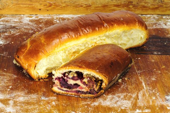 Umesite testo pa ostavite da odstoji pola sata. Podelite testo na 4 dela, svaki deo razvaljajte pa filujte. Dobićete četiri štrudlice koje ćete peći na 220 stepeni Celzijusa oko pola sata.