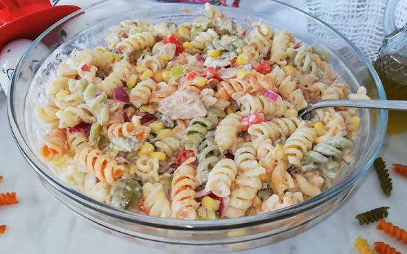 Potrebno je samo da skuvate makarone, ostale sastojke pomešate sa njima i ručak za danas je gotov! Ova salata može da vam posluži kao deo predjela na bogatoj slavskog trpezi.