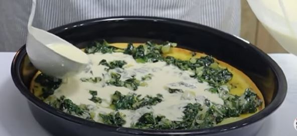Priprema: U litar vode dodajte so i ulje, sodu bikarbonu. Zatim prosejte kukuruzno brašno i pešnično pa lepo izmutite sve sa vodom. Praziluk iseckajte, kao i paprike iz turšije i sve propržite na malo ulja. Dodajte i spanać pa sve izdinstajte. Ugrejte rernu na 200 stepeni Celzijusa. U tepsiju izlijte smesu od brašna, pa dodajte fil, pa preko prelijte još smese od brašna i sve pecite dok ne dobije zlatnu boju. Prijatno!