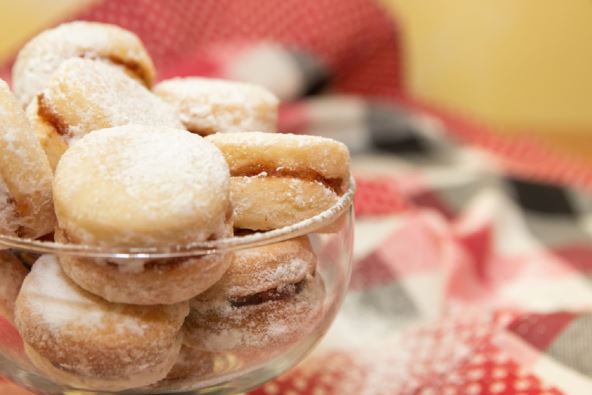 Kad su vanilice ispečene, ostavite ih da se prohlade, pa ih spajajte džemom od kajsija i uvaljajte u mešavinu od preostalog prah-šećera koji ste pomešali sa vanilin-šećerom.