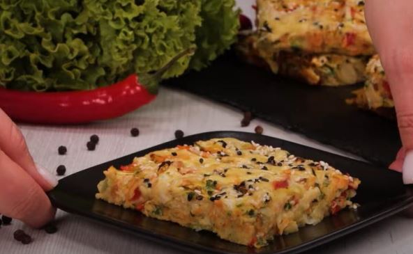 Potom umutiti jaja, dodati mleko, maslinovo ulje, so, biber, sve dobro sjediniti pa zatim dodati brašno i prašak za pecivo. Smesu dodati u činiju sa povrćem. Dobro izmešati sve sastojke pa sipati u pleh obložen pek papirom. Ravnomerno je rasporediti i peći 20 minuta u rerni zagrejanoj na 180 stepeni.