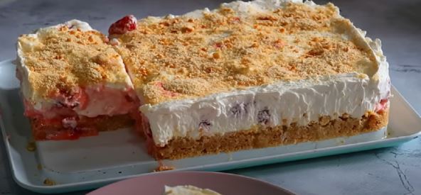 Najsočniji voćni kolač od jagoda i plazme, pravi se bez kuvanja i pečenja: