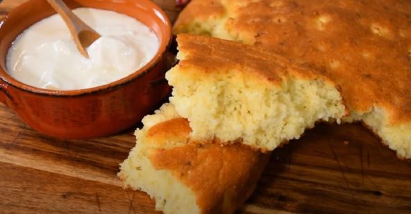 Priprema: U posudu prvo umutite belanca pa im dodajte belo brašno i prašak za pecivo, a potom so, kukuruzno belo brašno, pa izmešajte. Dodajte sir, ulje, jogurt, mineralnu vodu, žumanca i sve lepo izmešajte. Pecite u zagrejanoj rerni oko 45 minuta na 180 stepeni Celzijusa.