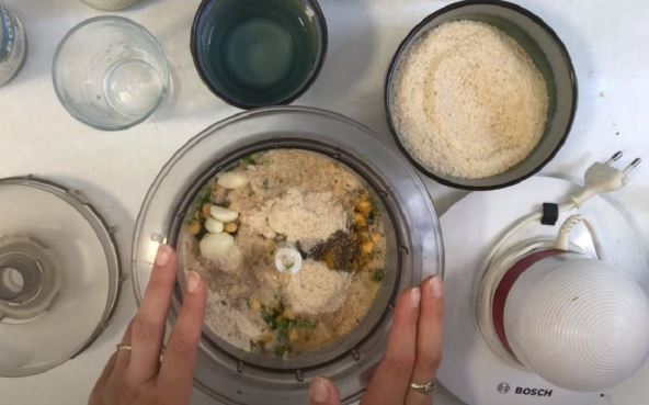 Sirove leblebije potopite u vodu noć pre jer moraju da odstoje od 8-12sati. Sutradan praviti falafel. Peršun iseckati na sitno, dodati sve ostale sastojke.