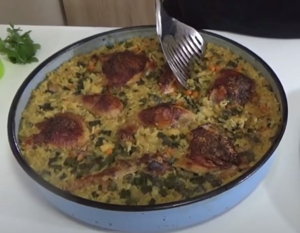 Priprema: Pileće batake ispržiti u ulju da postanu zlatno smeđi. Izvaditi ih iz masnoće, a u toj istoj masnoći prodinstati sitno seckan luk, rendan paškanat, celer, šargarepu i mladi luk. Dodati i pirinač da pokupi masnoću. Dodati začine pa u promešati. Sve preručiti u tepsiju. Preko pirinča sa povrćem dodati piletinu, naliti vodom i vratiti u rernu da se sve zapeče oko pola sata.