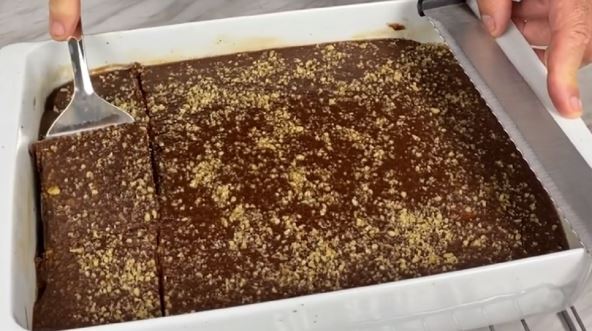 Dok se kolač peče, a potom hladi, napravite fil tako što ćete u izmešati vodu i šećer, zatim dodati maslac i čokoladu za kuvanje, kao i vanil šećer. Pa dobijeni fil prelijte prko kolača, pospite orasima i ohladite.
