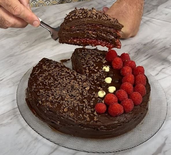 Stavite koru u kalup, pa filujte prvo čokoladnim filom, a onda filom od malina, koji bi trebalo da bude mlak. Ponavljajte postupak dok ne potrošite sav materijal. Uživajte u sjajnom ukusu!
