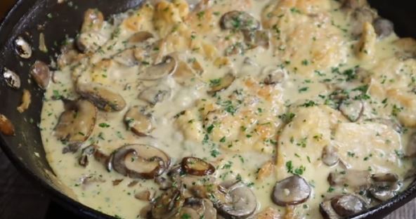 Priprema: Piletinu istanjite na tanke šnicle, pa je lagano izlupajte. Brašno i so promešajte pa uvaljajte pileće šnicle i pržite na malo masti ili maslaca. Kada se piletina isprži sklonite je sa ringle. U tiganju u kojem ste pržili piletinu, dodajte crni i beli luk, sitno seckan, a potom i pečurke. Kada se sve prodinsta, dodajte pileći bujon, sok od pola limuna i belo suvo vino. Šnicle vratite u sos od pečuraka. Sve dinstajte oko pola sata na laganoj vatri. Dodajte pavlaku za kuvanje i sitno seckan peršun. Nakon što provri, sklonite sa ringle i uživajte!