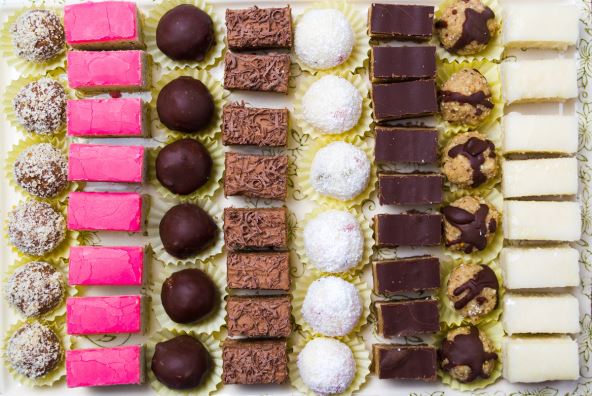 Sastojci: 200 g vode, 500 g šećera, 500 g mleka u prahu, 250 g margarina, 400 g kokosa, 100 g lešnika.