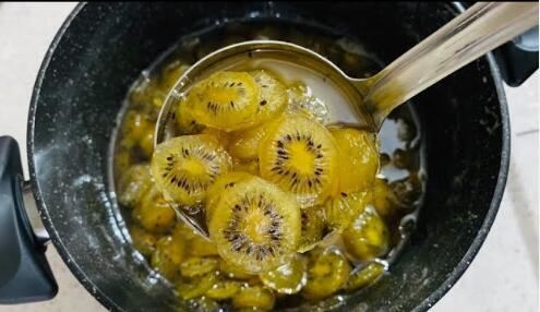 Na početku, pažljivo odabira manje plodove kivija i ostavlja ih da odstoje deset dana kako bi se dehidrirali i postali nešto čvršći. Kada voće malo uvene, pažljivo ga čisti i oljušti, kao što bi se krompir gulio. Zatim voće iseče na komade prema sopstvenom izboru, a ti komadići prolaze kroz proces potapanja u limunskoj kiselini kako bi stajali sat vremena. Nakon tog koraka,voćese ocedi i stavlja u pripremljeni sirup za kuvanje slatkog.
