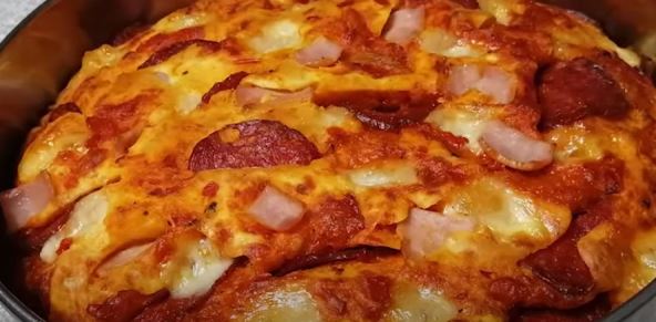 Priprema: Umutiti jaja, dodati jogurt, ulje, so i brašno i prašak za pecivo. Dobijenu smesu sipajte u pleh. Izmešajte ajvar, ulje, origano i dodajte preko smese u pleh. Zatim poređajte kulen ili slaninicu, kačkavalj, sve što imate i pecite na 200 stepeni Celzijusa oko 35 minuta.