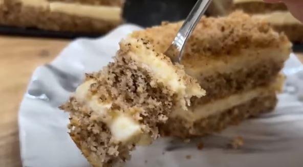 Priprema: Umutite jaja, šećer i mleko. Zatim dodajte ulje, brašno i prašak za pecivo. Dodajte mlevene orahe, sve lepo izmešajte pa ispecite dve korice ili jednu veliku pa je presecite koncem.