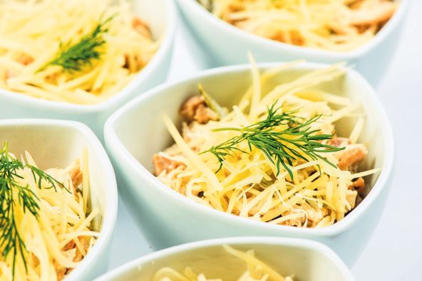 3. Ako želite, salatu možete malo zagrejati na vatri da se sir rastopi, u tom slučaju salatu poslužite odmah.