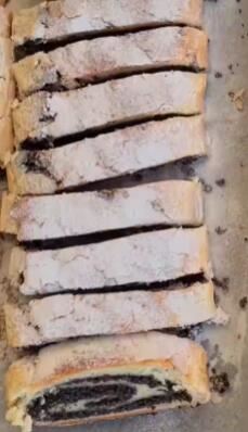 Pečene štrudle pokriti suvom krpom, a kada se prohlade iseći, posuti šećerom u prahu i servirati. Prijatno!