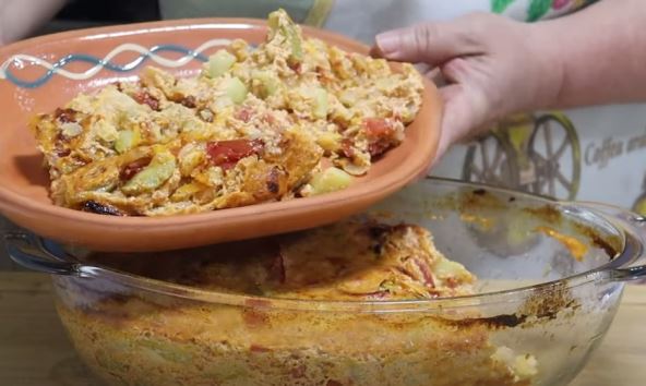 Priprema: Svo povrće ispržiti na ulju da ispari tečnost. 4 do 5 jaja umutiti pa dodati 5 kašike kisele pavlake. Dodati začine so, biber, začinsku crvenu papriku. Sjedinite sa povrćem i zapecite u zagrejanoj rerni na 200c./20 do 25min.