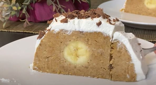 Priprema: Maslac umutite sa šećerom pa mu dodajte bananu izgnječenu. Zatim izrendajte jabuke pa ih ocedite i dodajte u smesu sa maslacom. Dodajte i sok od pola limuna, keks i mlevene orahe. Sve to jedinite u jednu smesu koju ćete oblikvati u rolat a u sredini ćete staviti bananu. Dekorišite šlagom.