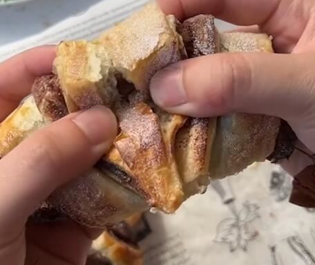 Premažite polovinu lisnatog testa sa nutelom, a zatim drugu polovinu prebacite preko, zatim isecite na trouglove, urolajte kako biste dobili oblik kroasana i premažite jajetom. Ispecite ih u rerni, pa pospite šećerom u prahu pre služenja. Prijatno!