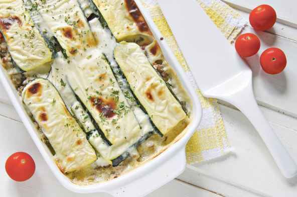 Tikvice iseći. Umočiti ih u brašno, pa u jaja i ispržiti u dubokoj masnoći. Na sitno seckanom crnom luku prodinstati meso i začiniti ga alevom paprikom, dodati so, biber i peršun. U vatrostalnu činiju ređati red tikvica, red mesa. Zaliti rojal masom (pomešano jaje, mleko i pavlaka) u koju smo dodali i mirođiju i sve to lepo zapeći u rerni oko 20 minuta. Kiselo mleko odlično ide uz ovakav ručak.
