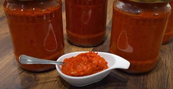 Priprema: Paprike operite i ispecite ih u rerni. To isto uradite i sa patlidžanom. Zatim paprike i patlidžan očistite od kore i semenki. Isecite sitno, pa u blenderu sameljite. Zatim sve stavite u vrelo ulje i pržite na ringli u šerpi dok se dobro ne uprži zajedno sa sirćetom, soli i šećerom.