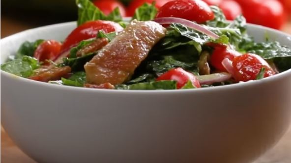 Dok se piletina peče, naseckajte papriku, krastavac i avokado na komadiće. Stavite povrće na tanjir i dodajte sveže listove spanaća ili rukole.