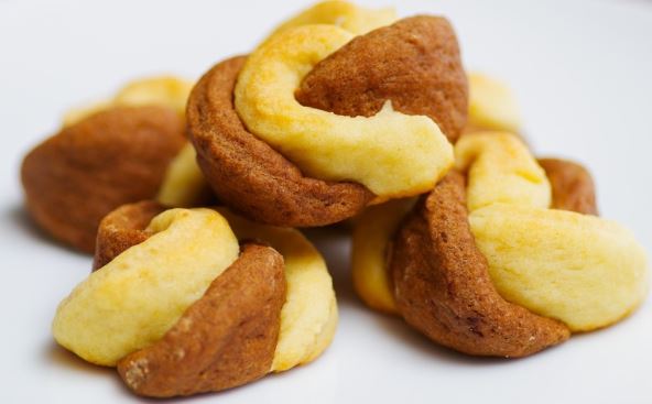Umutite jaja, ulje i mleko, pa umesite sa oko 300 grama brašna, praškom za pecivo i kvascem. Prepolovite smesu i umešajte kakao u jednu polovinu. Posle postepeno dodajte brašno u oba dela.