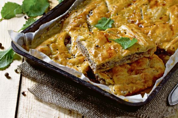 * 500 g mlevenog mesa * 500 g kora srednje debljine * 4 jajeta * 1 čaša jogurta * 1 čaša kisele vode * šoljica ulja