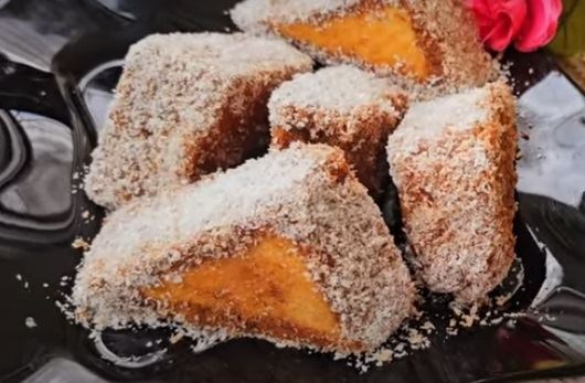 Svak trougao umočiti sa sečene strane i ivce u čokoladu, pa u kokos. Topi se u ustima.
