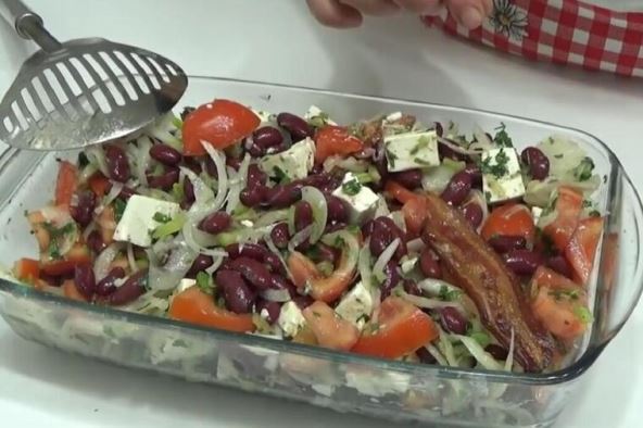 Foto: Printscreen Youtube/ Kuhinja Valentina Mašković Sastojci: 2-3 konzerve crvenog pasulj250 g feta sira2 paradajza2 glavice crnog luka50 g peršuna2 papričice-paprike150 g dimljene slanineMaslinovo ulje,so Priprema: Možda će vas zanimatiReceptiGrčka obrok salata koja može da se jede i na + 40: Ručak za 10, čisto savršenstvoRecepti7 RECEPATA ZA NAJBOLJIH 7 OBROK SALATA: Možete da ih nosite na posao, spremaju se lako, a ništa zdravije od ovog nemaReceptiNAJUKUSNIJA OBROK SALATA SA PILETINOM: Uz nekoliko sastojaka i svega 15-ak minuta možete pripremiti ovo zasitno jeloReceptiOBROK SALATA KOJA TOPI KILOGRAME: Glad se uopšte ne oseća, a mršavite iz dana u dan