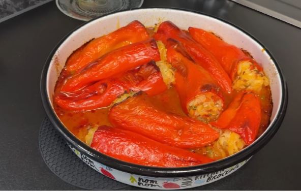 Paprike operite i skinite im peteljke. Posudu u kojoj ćete peći paprike podmažite sa malo ulja. Počnite da punite paprike sa filom od krompira, a zatim ih slažite u pleh ili tepsiju. Višak fila sipajte između paprika.
