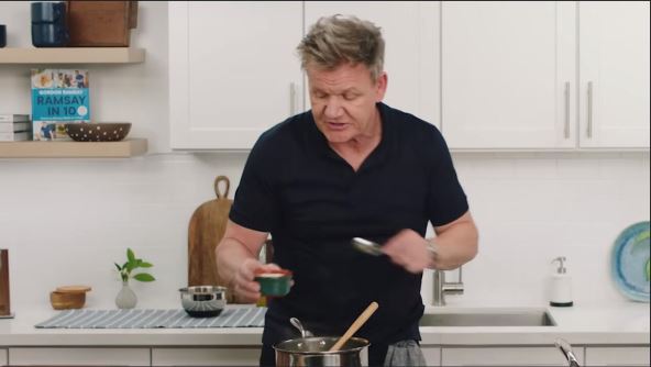 Remzi je zatim pokazao kako brzo da isečete luk "bez nepotrebnog otpada i muke". Prvo je prepolovio oguljeni luk tako što ga je zasekao po sredini. "Secite prema napred. Neka težina noža obavi posao", objasnio je.