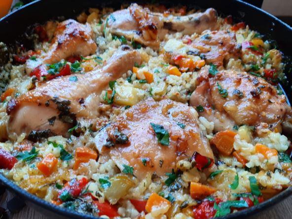 Priprema: Na ulju propržiti seckan luk i seckanu papriku, dodati seckanu šargarepu pa tikvicu i na kockice krompir. Posoliti, pobiberiti može i suvi začin, pa dodati šolju od 100 gr opranog pirinča. Doliti vode da ogrezne i krčkati na tihoj vatri.