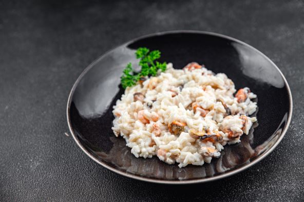 1. Na malo ulja ispržiti sitno iseckani luk, ali paziti da ne požuti mnogo. U to sipati malo belog vina, ubaciti pirinač i dodati dve šolje vode. Poklopiti i ostaviti da se krčka. Pred kraj skinuti s vatre i ostaviti poklopljeno dok pirinač ne upije svu vodu.