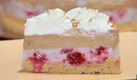Pomešajte Plazmu i deo šlaga, pa tu smesu stavite na tacnu kao podlogu za ostatak torte. Deo šlaga namažite preko podloge, pa pospite malinama.