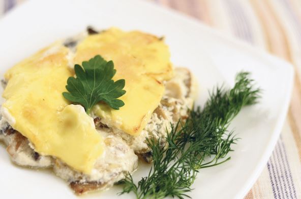 1. Skuvati krompir, umutiti ga s mlekom i kajmakom i preručiti u podmazanu vatrostalnu posudu.