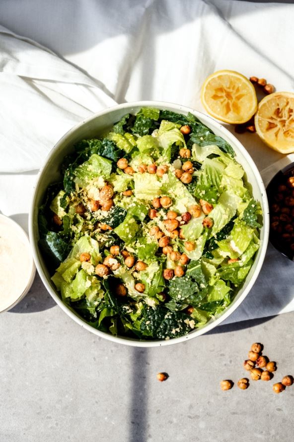 A kako svako jelo ima svoju vegansku varijantu, tako je ima i cezar salata. Umesto piletine i slanine, u ovom receptu koristi se leblebija, koja će zadovoljiti vaše potrebe za proteinima. Ova kombinacija je izuzetno hranljiva i ukusna.