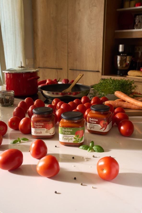 Bakina tajna gotovi umaci, napravljeni od paradajza šljivara, svežeg bosiljka i maslinovog ulja, idealan su dodatak svakom obroku – štede vreme i obogaćuju ukus svakog jela.