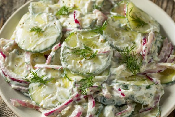 Izrendajte krastavac, pomešajte sa jogurtom, belim lukom, maslinovim uljem i malo oraha. Posolite, rashladite i poslužite uz malo kopra. Idealan osvežavajući obrok.