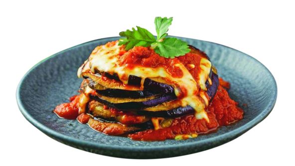 4. Ređati jedan sloj sosa od paradajza, pa patlidžane, pa odozgo mocarelu i posuti parmezanom, pa ponoviti postupak.