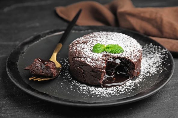 3. Posebno penasto umutiti belanca (obavezno neka budu sobne temperature). Spojiti ih sa smesom od žumanaca, lagano promešati, dodati čokoladu i puter, sve sjediniti, pa dobijenu masu staviti u vatrostalne činije. Peći 12 minuta u ugrejanoj rerni na temperaturi 200 stepeni.
